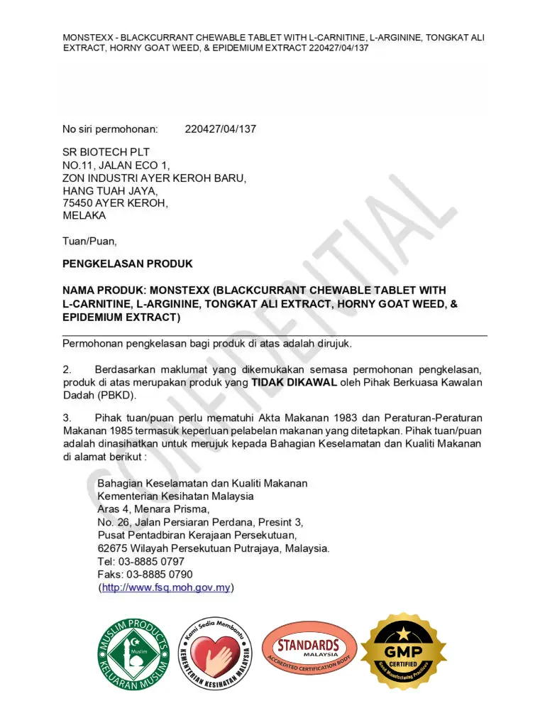 MONSTEXX LULUS KKM, LULUS UJIAN MAKMAL KLINIKAL & DIJAMIN HALAL!